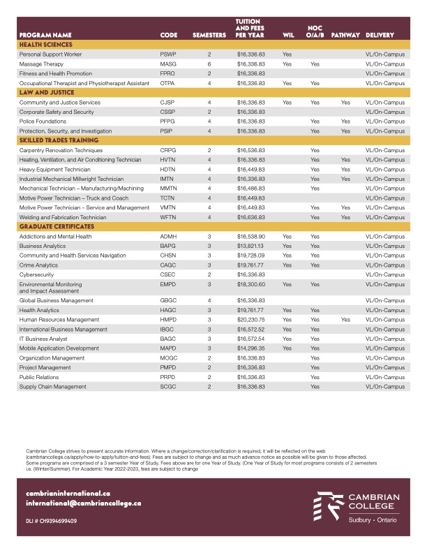 - Xếp hạng #2 trên 24 trường công lập tại Ontario về tỉ lệ sinh viên tốt nghiệp có việc làm trong vòng 06 tháng ( 87.6% ).